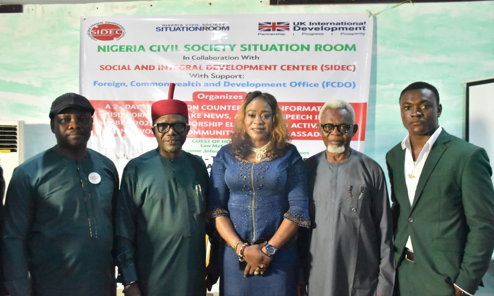 By Uzo Ugwunze The Social and Integral Development Centre (SIDEC) has condemned the increasing spread of disinformation, misinformation, fake news, and hate speech as threats to...